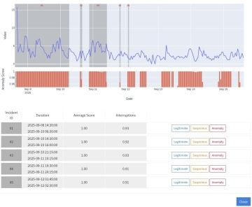 This dashboard also includes a heatmap that shows persistent anomalies by region or cell. It allows time series comparisons between normal and unusual behavior. Users can also perform correlation analysis to find root causes. Experts can provide feedback directly in the dashboard interface, which helps refine the model.